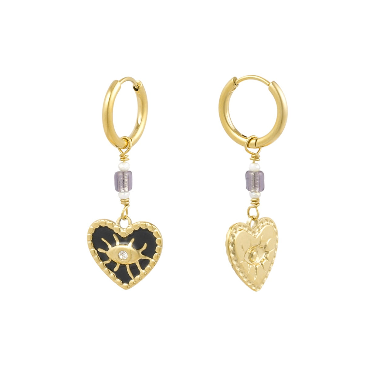 oorbellen- hartjes kraaltjes zwart goudkleurig